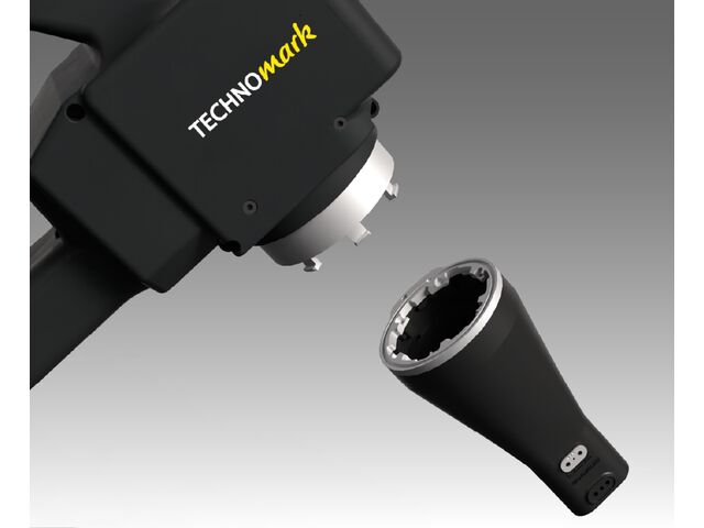 The marking head’s nose is also designed to adapt to restricted access areas. Two interchangeable noses are supplied with the GX Mate, enabling markings even in tight spaces. Custom noses can also be manufactured for specific constraints. However, the marking window depends on the nose used: the smaller the marking area, the smaller the window.