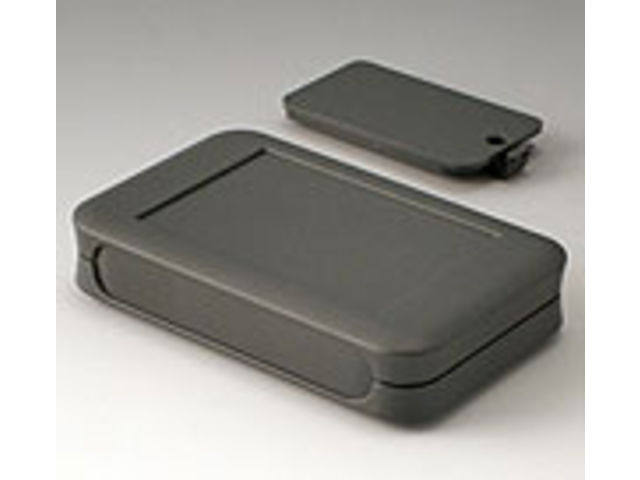 Design: Large exclusive hand-held case. With recessed area e.g. for membrane keyboards, control elements. Battery compartment accessible from the outside with locked battery compartment lid. For 2 x 9 V flat batteries (PP3) or 4 x 1.5 V mignon cells (AA). Cut-out section for digital and analogical modules. Raised front area to accommodate plugs.