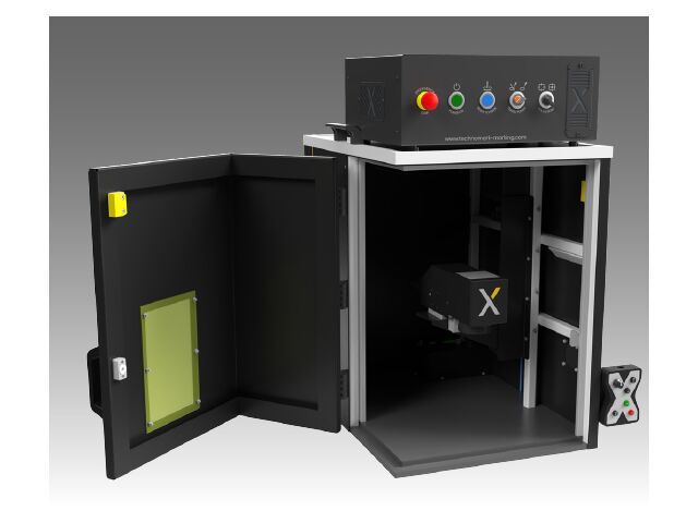 This unit is a combination of our standard components rotation unit MR2 and rotation unit MT1. It provides the ability to rotate workpieces around two axes to gain maximum flexibility in terms of marking locations.