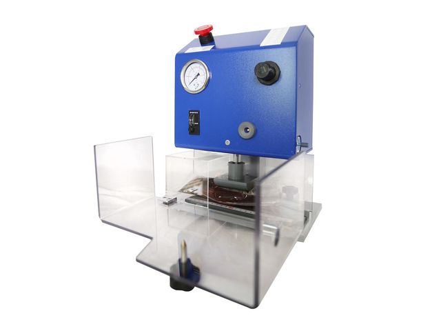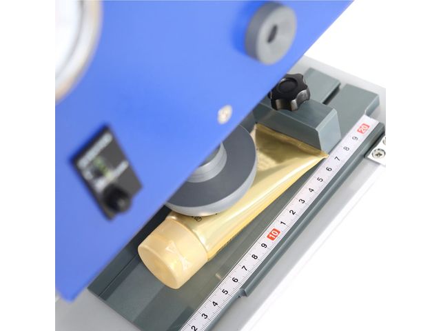 “ Easy to use - Fully pneumatic - Easy to clean in case of tube bursting thanks to its transparent receptacle Adaptive The sample holder is equipped with an adjustable stop, allowing the testing of a wide variety of sample shapes, as well as a ruler to ensure the positional repeatability of each product. ”