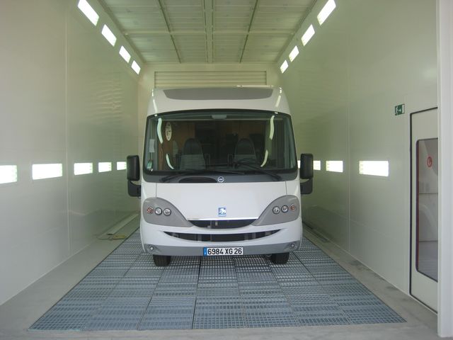 Spray painting booth dedicated to HGV (heavy goods vehicle) and LV (large volume) spray booths in the automotive sector (rucks, buses, containers, all types of truck parts…).