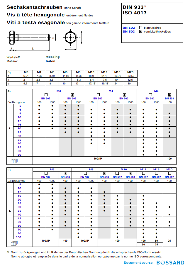 Hex Head Screws : Standard Hex Head Screws - Nickel-Plated Brass - Hex Head, Nickel-Plated Brass, Fully Threaded, DIN 933