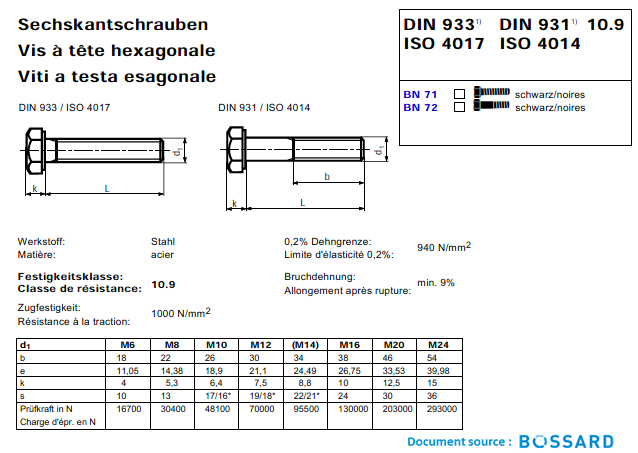Hex Head Screws : Standard Hex Head Screws - Black 12.9 Steel - Hex Head, Black 12.9 Steel, Fully Threaded, DIN 933
