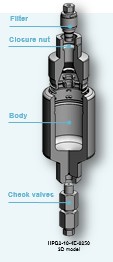 The Nova Swiss® bottle HPB2 is designed for gas high pressure applications up to 20.000 psi (1350 bar). This bottle is declined in 6 standard models (3 volumes and 2 pressure ranges), with a multiple connection choice. It also can be customized in order to answer different technical needs.