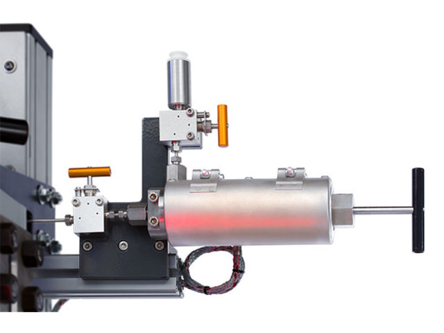 Simulation of extreme pressure conditions of oil reservoirsThe measuring cell works at pressures up to 350 bar and temperatures up to 120 °C, thus making it possible to observe the foam behavior under reservoir conditions. Sensors continuously transmit the pressure and the temperature to the ADVANCE software.