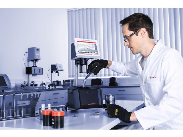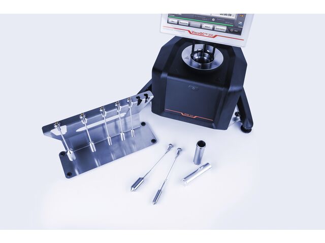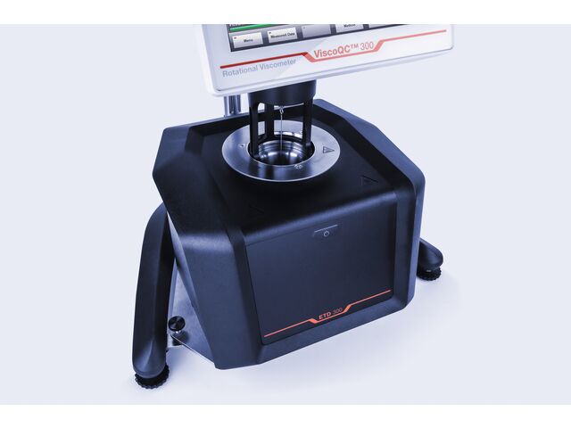 “ Automated high-temperature viscometer setup - Total control via ViscoQC lets the operator more easily handle measurements, without the need for separate temperature program synchronization - Special highlight : the fully automated ASTM D4402 method saves time and provides highly accurate readings - Create automated measurement methods with up to 40 steps or use statistical models like averaging with optional V-Curve software - Perform temperature scans between set points for quick sample analysis at different temperatures Full traceability of temperature and measurement - Automatic spindle recognition with Toolmaster feature : eliminates human error during spindle selection and guarantees full traceability - Most reliable temperature control on the market : T-Ready function signals when the sample has truly reached the set temperature, for best measurement repeatability - Most accurate temperature readings as the sensor directly signals data to ViscoQC - 100% temperature traceability : temperature is automatically recorded in the test report for each measured data point Features for unmatched convenience - Fast, secure alignment of the ETD 300 : once secured with the centering bracket, system will remain aligned - Magnetic spindle coupling comes as standard, making spindle attachment faster, easier, and safer - No extra lab space required as ETD 300 only needs to be placed under ViscoQC - Digital leveling via ViscoQC display with continuous monitoring of the leveling. Measurement always with a perfect leveled setup - improving repeatability. ”