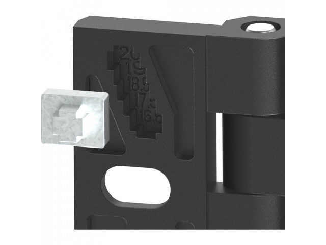 EMKA offers a comprehensive product range of ingenious locking technology from a single source. The modular program structure allows a unique variety of components: quarter turns, locking-systems, handles, hinges and gasketings. The high quality and product standards are guaranteed by an excellent manufacturing know-how and by the certified process control according to ISO 9001. for location of socket for plug please refer to rear of hinge this hinge can be installed with aluminium profiles from several renowned manufactures this hinge offers versatility due to several location options for plugs on the rear for four plugs, supplied with each of the hinges, provide protection against twisting and are suitable for slots of N = 8 and 10 or N = 7 and 10 mm (other N-dimensions on request)