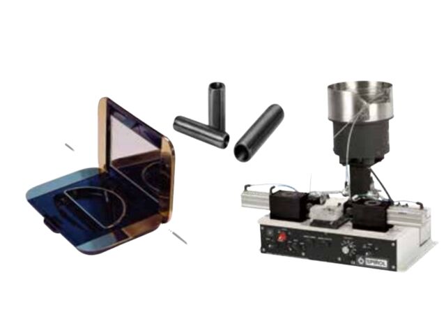 SPIROL's Model HC Dual Pin Inserter is a lightweight, portable, horizontal Pin Inserter designed to install SPIROL Series 550 Cosmetic Coiled Pins into plastic hinges. The cylinder/driving head modules can be moved in and out with ease, and fixture changes are simple which enables quick conversion from one assembly to another. This machine quickly and effectively delivers the pins automatically to the installation site eliminating the need for the operator to touch them during the entire assembly operation. This machine dramatically increases production efficiency with minimal operator training and effort.