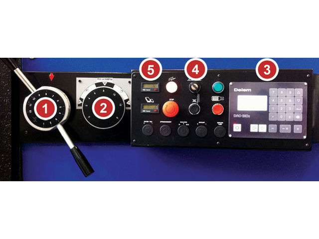 3 - Numerical control DELEM DAC 310 s allowing operation in display mode, automatic positioning mode with backlash, the ability to program up to 100 steps, the repetition of steps, management of the cutting length, the decline Automatic backstop rule when cutting and a coin counter mode