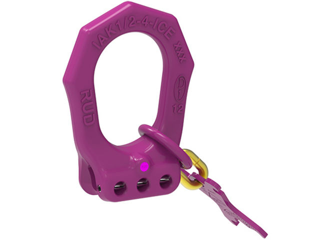 The size corresponds with that of suspension link type A acc. to DIN 5688, manufactured in compliance with EN 1677-4. ICE-Master link is marked by the RUD-ID-TAG® (RFID chip) and with the clear identification number distinguished.