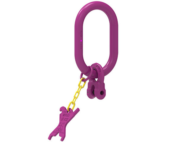ICE-Master link 1-leg with an all direction movable welded IRG connector, thus ensuring that only the correct chain diameter and number of strands can be connected.