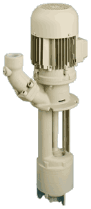 are plain centrifugal pumps with the impeller fitted on the driving shaft extension. They are mounted on top of the container, the pump extension being immersed in the coolant.