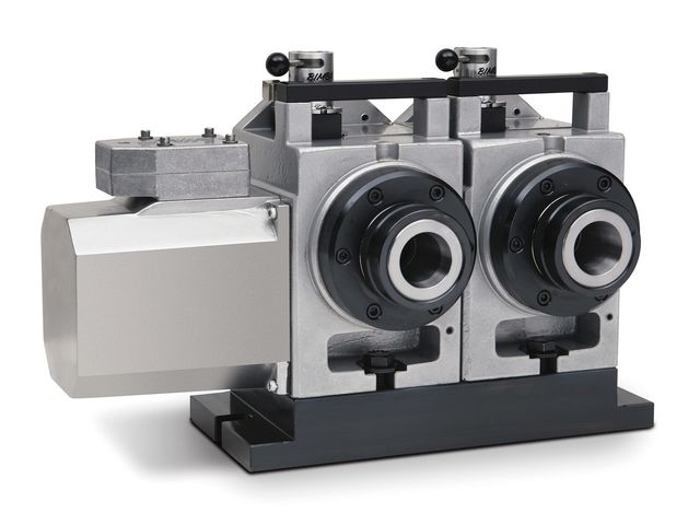 Dual-Spindle Servo 5C System with thrust bearing, for use with Haas tailstocks. Requires a Haas mill with 4th-axis drive for full 4th-axis operation, or a rotary control box for stand-alone operation. This unit has no collet closing capability as standard. Tailstock thrust must not exceed 800 lb (3559 N). Requires a Haas mill with software version 18.00 or later.