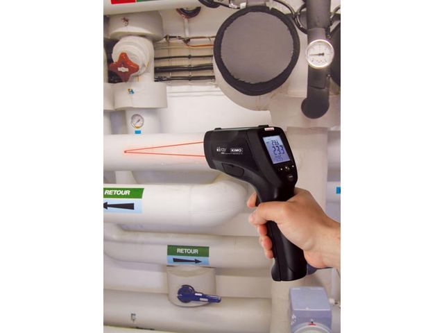 The Kimo KIRAY 300 infrared thermometer with a dual laser sighting is a key instrument to diagnose, inspect and check any temperature, with the advantage of using “no-contact” technology. It has a measuring range of -50 °C to +1850 °C.