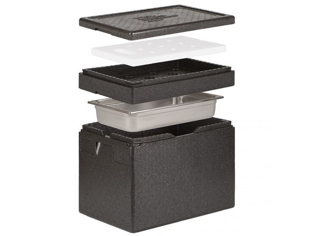 The GN1/1 - 61L insulated gastronorm container is ideal for safely transporting hot, cold, fresh, or frozen products. With its ergonomic built-in handles, robustness to load a weight equal to its volume, it is exceptionally thermally insulated. It also offers the possibility to incorporate a supporting frame with a eutectic plate (GN1/1, GN1/2, GN1/3, GN1/4, or GN1/9). Dishwasher safe up to 90°C – HACCP norms.