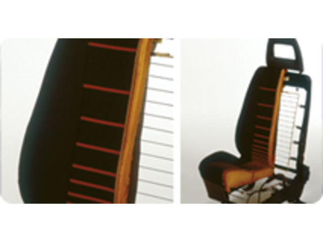 The wire structure covered by a cushion provides support and comfort in the car seat. The framework is made through bending and forming, the wires are cut and coated to avoid noise and loose jounts at the intersection with the wrapped stringers.