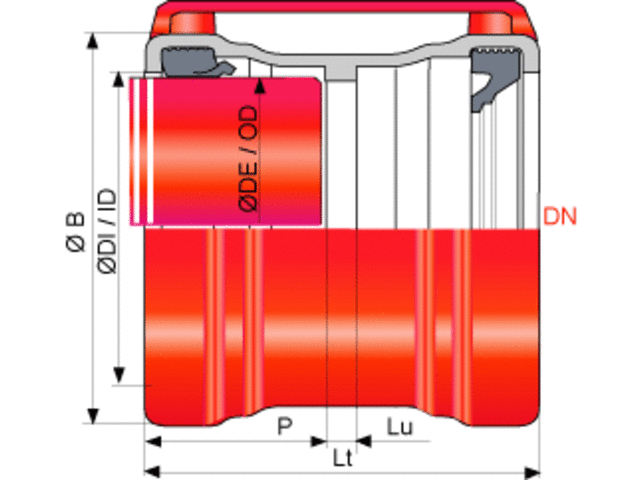 This type of coupling has been designed specifically to connect a spigot end with INTEGRAL dimensions to the socket marked cast iron side and a spigot end made of other materials.