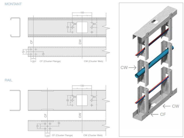 The new Sadef sections are now even simpler to join. From now on, 2 bolts are sufficient to join the components, as the brackets are fully integrated into the sections. Thanks to the integrated connections, steel structures can be assembled in a fast and easy way, comparable to a meccano-system. For the first integrated connection, AutoConnectMiddle, the connection lugs are placed lengthwise. For the second integrated connection, the connection lugs are placed at the ends of the Sadef-sections.