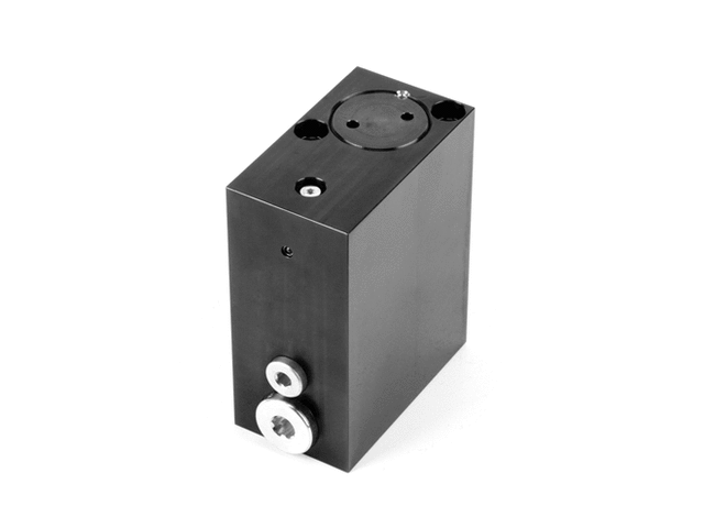 The compact intensifier converts the hydraulic pressure on the primary side (input) into a higher pressure on the secondary side (output). This enables the use of the low pressure of machine tool hydraulics to pressurise a hydraulic cylinder with almost twice the pressure. In conjunction with drilled channels, the reduced dimensions allow a space-saving installation directly on the clamping fixture.
