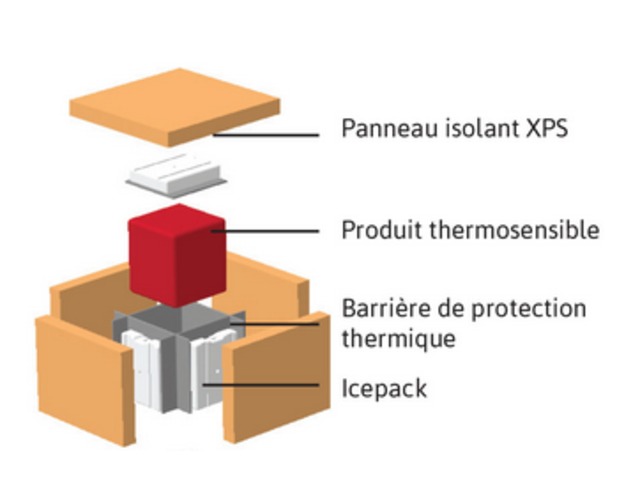 XPS solutions are tested according to temperature profiles defined by the NF S99-700 standard. These solutions include an exterior casing of ISOSTRAT, insulation boards (XPS expanded, extruded polystyrene), an internal cushion for thermal barrier protection and the required icepacks.