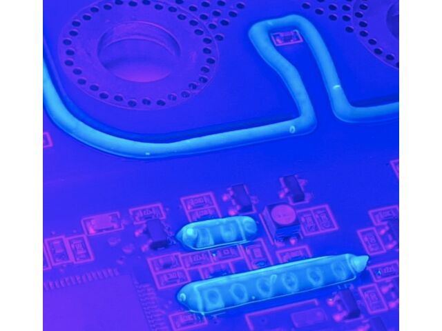 K-LITE 857E is a single-component transparent varnish, designed for the protection of printed circuits subjected to harsh environments as well as for the coating and protection of LEDs. K-LITE 857E benefits from dual cure technology (UV/moisture) enabling cross-linking in shaded areas. K-LITE 857E can be applied in a selective application machine, which is the ideal application method. K-LITE 857E complies with REACH and RoHS regulations. UV adhesive is a curable adhesive available in acrylate or epoxy base for flexible and high strength mechanical bonding applications. UV adhesives are cured by exposing the adhesive to visible light or UV light.