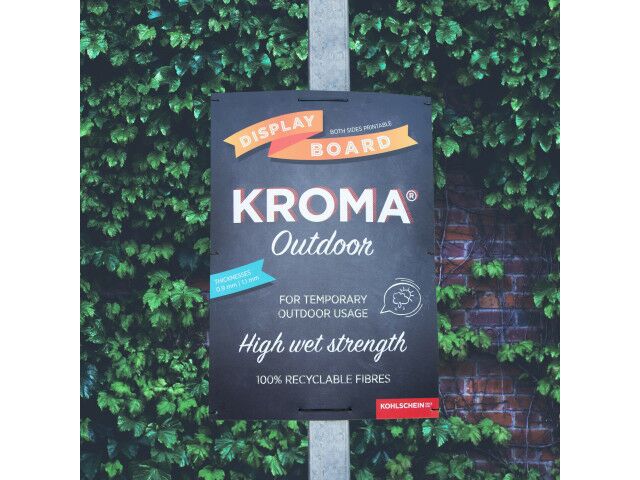 KROMA® Outdoor is characterized by environmental friendliness & high moisture resistance and is used for temporary outdoor applications as election / hanging signs & billboards. Furthermore our paperboard can be used as a pavement sign & for plant plugs. Our material is the right solution not only for outdoor use, but also for indoor use, e.g. in case of high humidity - where flatness problems can arise with other solid cardboards.