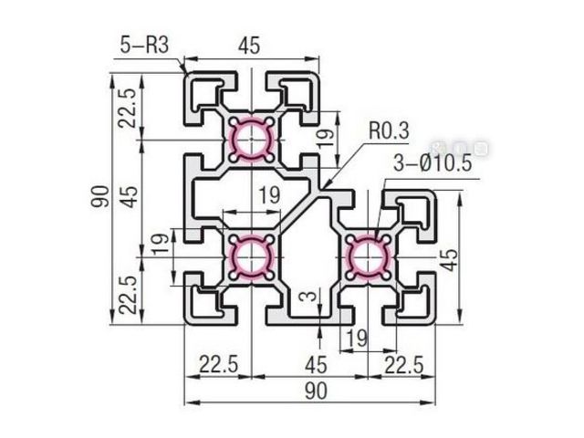 L-Shape Aluminium Profile 10 mm Slot 90x90x45