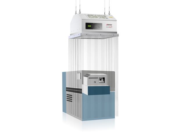 The laminar flow module is attached to the building‘s ceiling with ceiling hangers. The curtain prevents the entry of dirty air when people walk by or transport vehicles drive by. In general, this system is used to create localized clean room conditions at machines or instruments which are too big to place them inside a box. In addition, assembly workstations can also be enclosed.