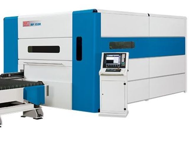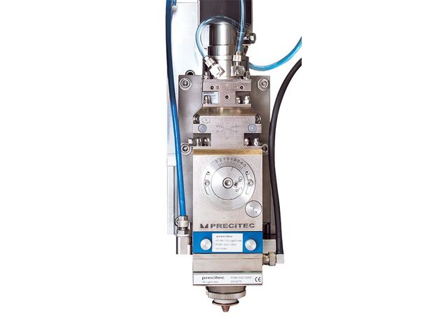 Laser cutting process takes place within a sealed, laser-safe enclosure, whereby machining can be monitored through a protective glass window