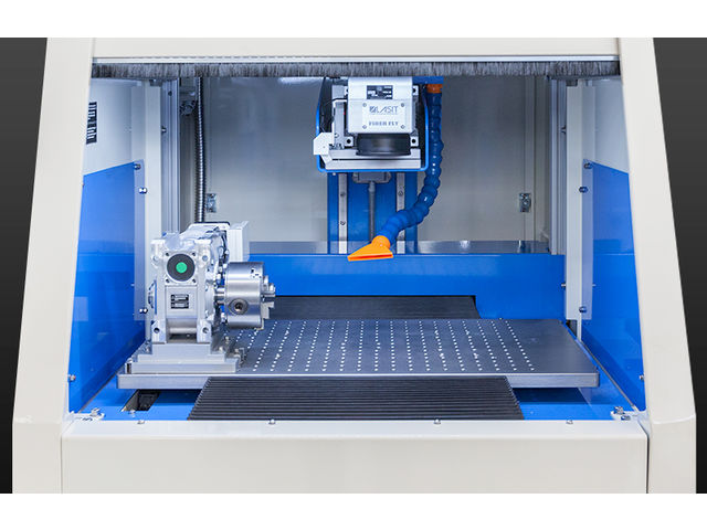 The table can support parts weighing up to 150kg. The Z axis, operated by the FlyCad marking software, allows us to mark different thicknesses up to 400mm. All motors feature integrated encoders which can be controlled via a 3-axis joystick. This state of the art Smart Focus Technology enables the operator to utilize the preview function and immediately focus and center with no effort to begin marking. The CompactMark is available as both a standard or customized system with varying sizes to meters with optional full gantry and smaller footprint as well as other automated option including palletized and robotic pick and place systems, multiple rotary axes, vision systems for recognition, centering and verification, and conveyors. The system is pre-designed to accept a fume exhaust filtration system depending on materials to be marked.