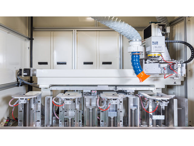 FlyLabel 4 is a laser marking system designed to automatically mark different size plates, labels, or tags. The standard version offers 4 loaders each of which can hold up to a thickness of .5mm. The process is automated as the laser runs along the X axis.