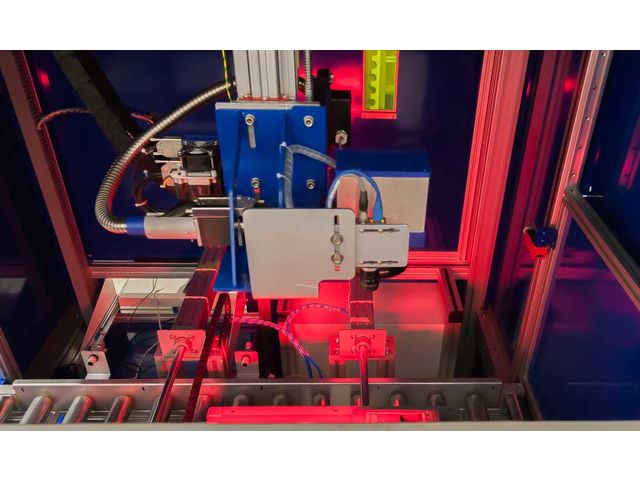 The system can be configured with any type of laser from fiber, green, C02 or UV. The system is configured with programmable XY and Z axes with a range of strokes depending on the quantity and application.
