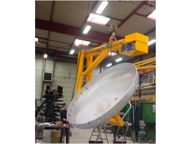 For the reversal of convex fund, lifting beams with suction cup is made to measure and used in the manufacturing of tanks and reservoirs. Of a capacity of 600 kg lifting, this lifting beams adapts itself in bottom from diameter 1400 to 2700 mm.