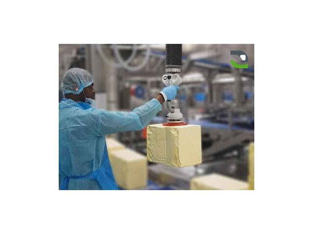ERGO Fast is compatible with many options that complement the solution in order to adapt it better to suit clients' needs. For example, the option of rapid change of gripping tool (yoke) allows one manipulator to be used for many different types of load: lifting of boxes by suction cup, lifting of cans with square brackets, lifting of trays with forks etc.
