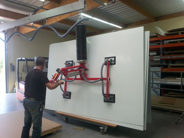 It becomes to lift large panels when working alone, while manual handling of these loads can involve up to 4 people simultaneously.