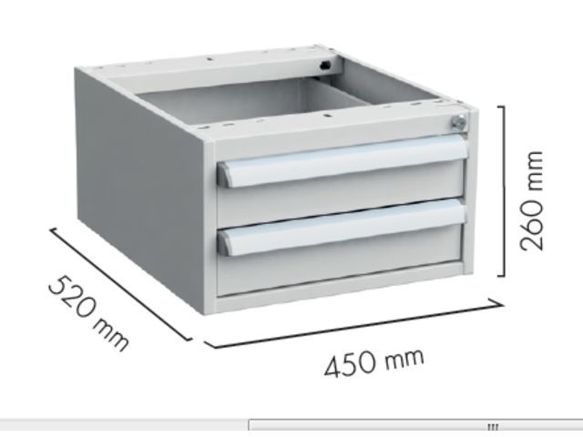 light-weight drawer unit with one, two, or four drawers, to be mounted under the worktop. A drawer-cabinet combination is also available. The frame and drawers are powder-coated steel, the drawer fronts and cabinet doors are made from MDF. A clever and handy drawer unit for frequently used small parts. Also with ESD protection.