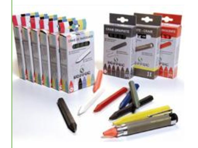 Standard use for marking all surfaces. A specific fluorescent lumber crayon:scannable marker