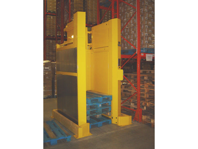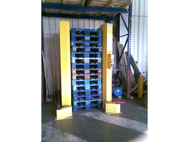 The pallet stack is lifted high in order to allow the picking up of the pallets on the floor without risk of snagging (about 100 mm clearance between the top and the bottom of the pallet stack).