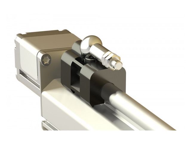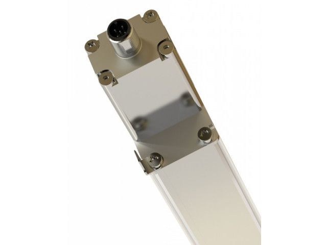 The displacement transducers operate according to the principle of run time measurement between two points of a magnetostrictive waveguide. One point is determined by a moveable position magnet, whose distance from the null point corresponds to the section to be measured. The run time of an emitted impulse is directly proportionate to this section. Conversion to an analogue measuring signal takes place in the downstream electronics. The waveguide is housed in an extruded aluminium profile. The electronics is housed in a die-cast aluminium sensor head. Electrical connection is implemented via a circular connector. The position magnet is located either in a slider, which is linked to the moving part of the machine via a ball joint, or it moves as a liftable position magnet, without wear, over the profile.