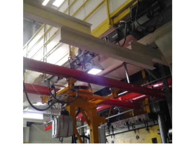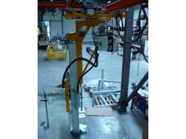 Provided with suction cups, this manipulator assures the handling system of the deflector with big backwardation to assure it implementation in the press. It also has a balance of electronic load fixed to a vertical matt, and serving as slide channel for the movements of rise and descent.