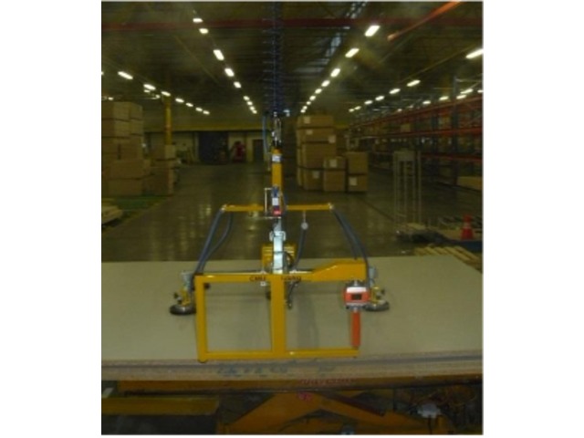 Proposed by the company SAPELEM, the manipulator of melamine boards by suction cups is ideal for the load and the unloading of a saw with panels. This manipulator allows the seizure and the horizontal deposit of the wooden melamine boards to load or unload a line of cut.
