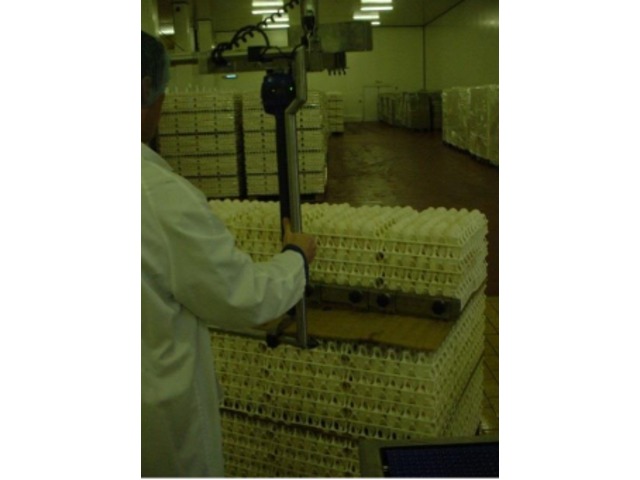 The manipulator of trays of eggs, conceived by the company SAPELEM, is ideal for the palletization of trays of eggs in an average of 16 trays by cycle.