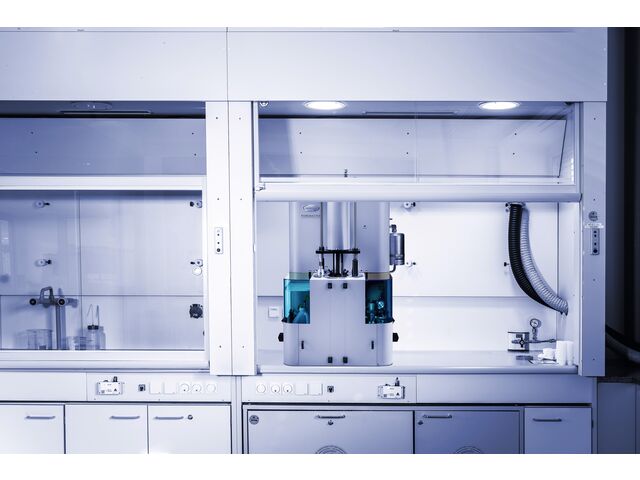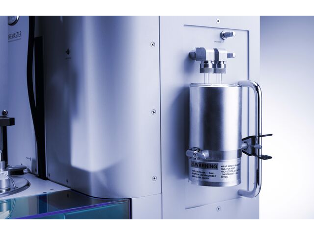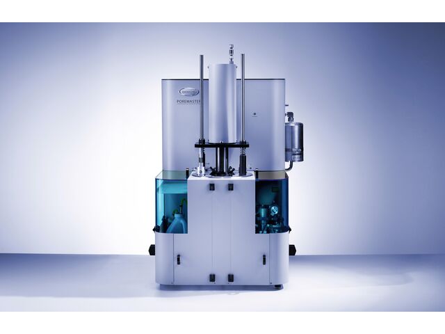 “ Designed to fit easily into your lab and keep you safe The cabinet of the PoreMaster acts as the primary containment of potential spills of liquid mercury during the measurement process. Placing the instrument on a spill tray provides extra protection to lab personnel and allows for easy cleanup if necessary. Unlike floor-standing models, the benchtop design allows you to place it in a fume hood to handle mercury vapors. If you don’t have room in your fume hood, the instrument can be placed on a bench next to the fume hood when its ventilation kit is attached. The effluent of the ventilation kit is then directed to the fume hood. In either case, air is pulled away from the operator and through the exhaust of the fume hood, keeping operators safe. Fill sample cells and perform low-pressure measurements in as little as 20 minutes By simply ensuring that the cold trap is filled before every measurement, the efficiency of the vacuum pump makes the initial sample cell evacuation process extremely fast. This level of speed means all PoreMasters can completely process at least 12 samples every day, if required. Intelligent pressurization routine provides equilibrated results without excessive waiting PoreMaster instruments avoid the problems of under-equilibrated data and insufficient measurement resolution. With the unique AutoSpeed function, they pressurize at the fastest rate until intrusion is detected, and then slow the rate to collect a continuous measure of equilibrated data, reducing analysis time. Easy handling for convenient work From the easy introduction of liquid mercury to the instrument, to an automated air purge of the high-pressure hydraulic stations, the design of the PoreMaster considers operator convenience. In addition, even though you can create blank cell files for all of your sample cells, it is completely unnecessary when using the standard sample cell configurations on these instruments. ”