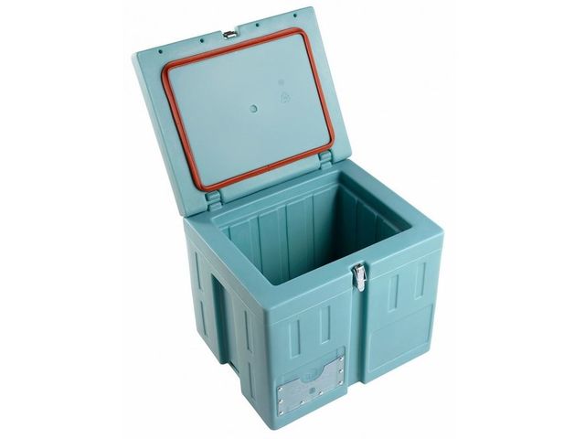 A modular range of PU-foam-insulated containers for transport and storage of temperature-sensitive goods. For each size of container cold accumulators are available to maintain the contents at low temperatures for longer periods. A company logo can be embossed into the container.