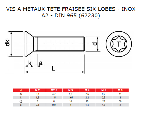 Metal Screws : Countersunk Head - Tête Fraisée Torx TFX - Inox A4 DIN 965