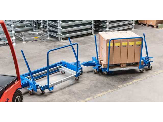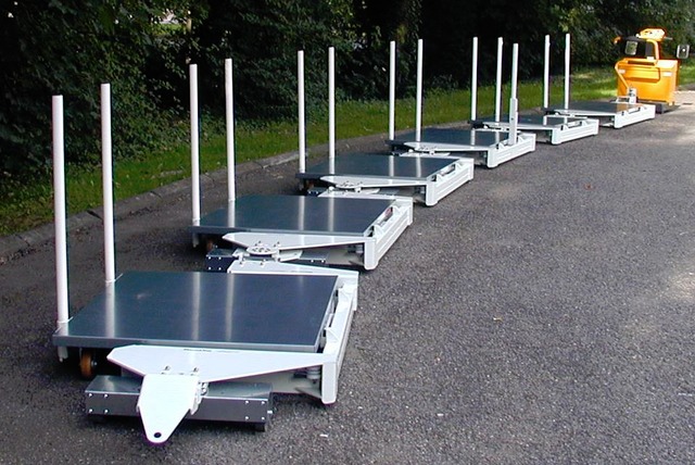 One or more Platforms (=Dollies, Cart) per Receiving Trailer, on which are laid the loads in order to supply the different work stations.