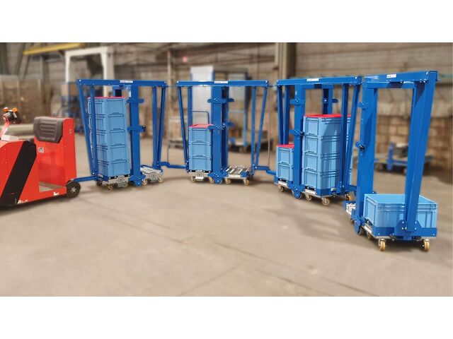 One or more Platforms (=Dollies, Cart) per Receiving Trailer, on which are laid the loads in order to supply the different work stations.