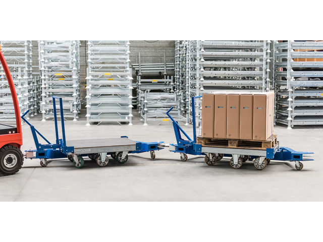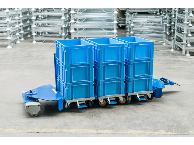 Tugger train with an excellent directional stability for an optimal assembly line supply.