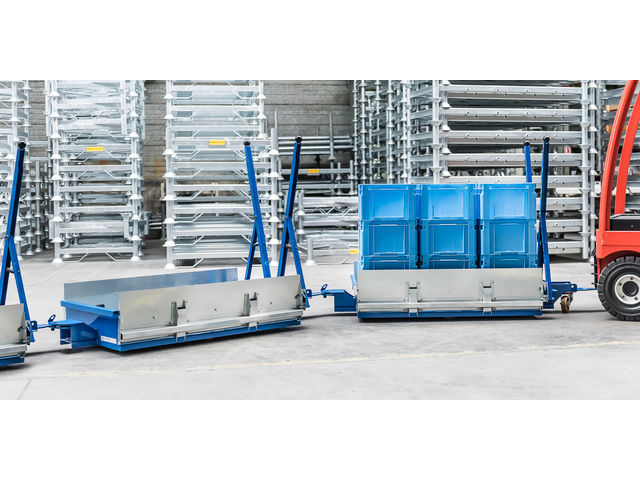 One or more Platforms (=Dollies, Cart) per Receiving Trailer, on which are laid the loads in order to supply the different work stations.
