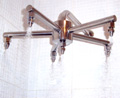 Mist shower with automatic panel, two moisture-proof knobs for hot and cold water, 6 jets of 2.5 l /minute distributed at the top -above the head-, made in stainless steel.